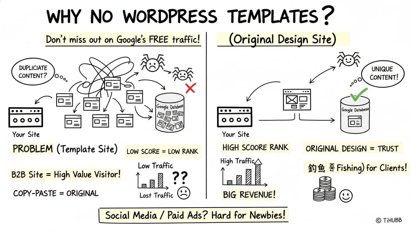特别是B2B站点,单个访客的价值高,因为一旦成交一笔,可能就是几千几万甚至几十万美金的合同。谷歌给你的网站评分低,给你排名的机会自然就低了,你套用模板节省的那点费用,成交一单可能就是几十倍几百倍的赚回来了。