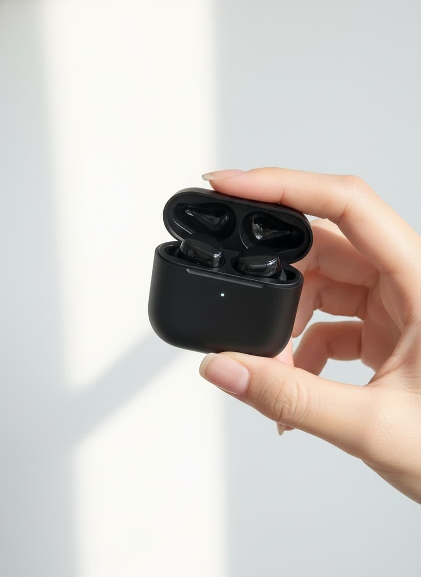 "prompt": "Close-up of a woman's hand, slender fingers with delicate non-protruding joints, fair jade-like skin on the back of the hand, nails trimmed into refined square-round shape, coated with sheer nude pink nail polish, fingertips with subtle pearl sheen,\nsingle hand naturally and elegantly holding and showcasing [specific product name and description, e.g.: a matte black wireless Bluetooth earbuds charging case / a rose gold metal lipstick / a minimalist glass perfume bottle / an exquisite hard paper gift box / a jewelry box etc.], [optional: hand-product interaction description, e.g.: gently pushing the lid to reveal the earbuds / lightly gripping and slightly rotating the bottle / fingers gently pulling the ribbon to open the gift box / naturally holding and slightly tilting to show the interior, or leave blank for automatic adaptation], highlighting the product's minimalist premium design, natural and fluid hand movement with perfectly reasonable finger positioning,\n[optional: product reference description, e.g.: reference to the item in the uploaded image with high-quality rendering and perfect integration, or directly describe product appearance, material, color, shape etc.],\nnatural slanting light, soft sidelight emphasizing hand skin texture and product material, clean minimalist background [optional custom background, e.g.: light gray gradient / marble tabletop / soft white studio background / window with natural light etc.],\n8K ultra-high definition, photographic realism, extreme detail, perfect physical interaction and hand pose adaptation, no distortion, no flaws, no unreasonable deformation, professional product photography style --ar 3:4"