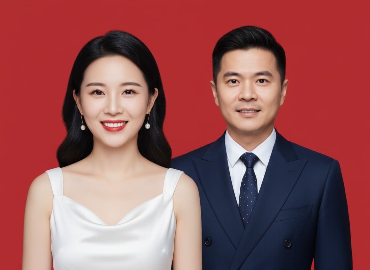 "atmosphere": "庄重而不失亲切,经典结婚登记照风格",
